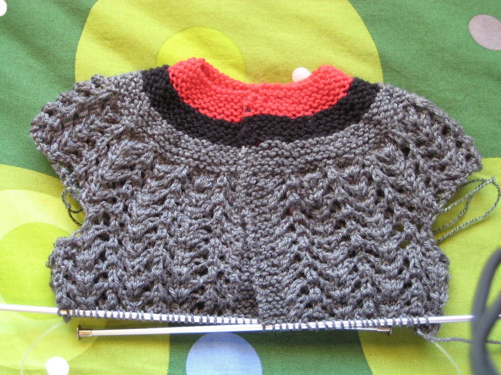It’s a miniature sweater (sans sleeves). Although part of the calming power of this sweater is that there’s no deadline and no recipient to impress, I’d love to see what it looks like on an actual baby.