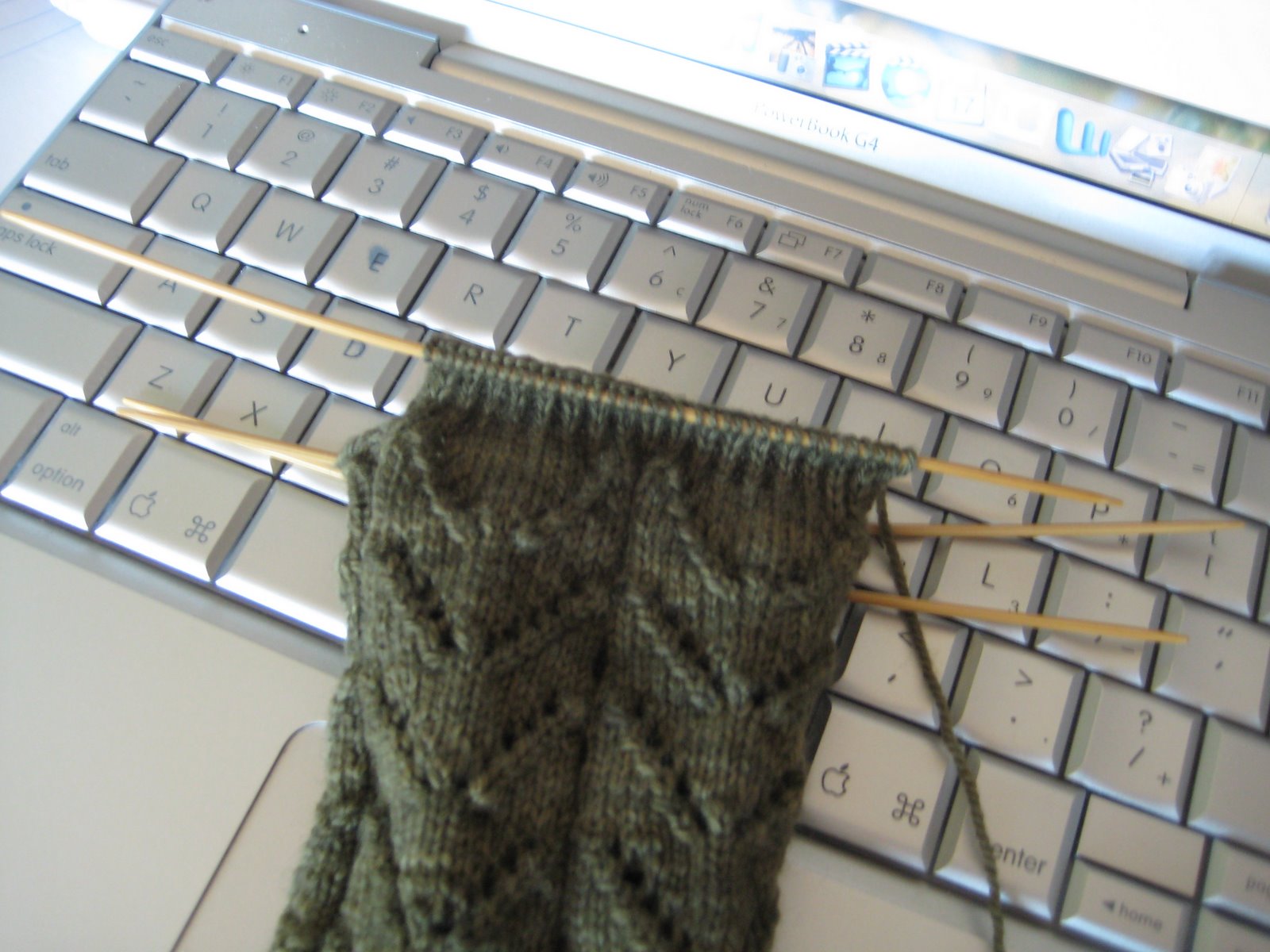 The sock is back on track! (Wouldn’t it make a very nice mitt, too? Just throw in a space for the thumb to come out…)