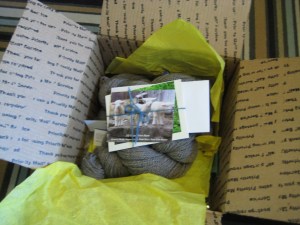 I’m knitting it with my Vermont Grand View Farm Romney. This year’s share came at the end of May, complete with goodies as before, and I wasted no time getting started on my project!