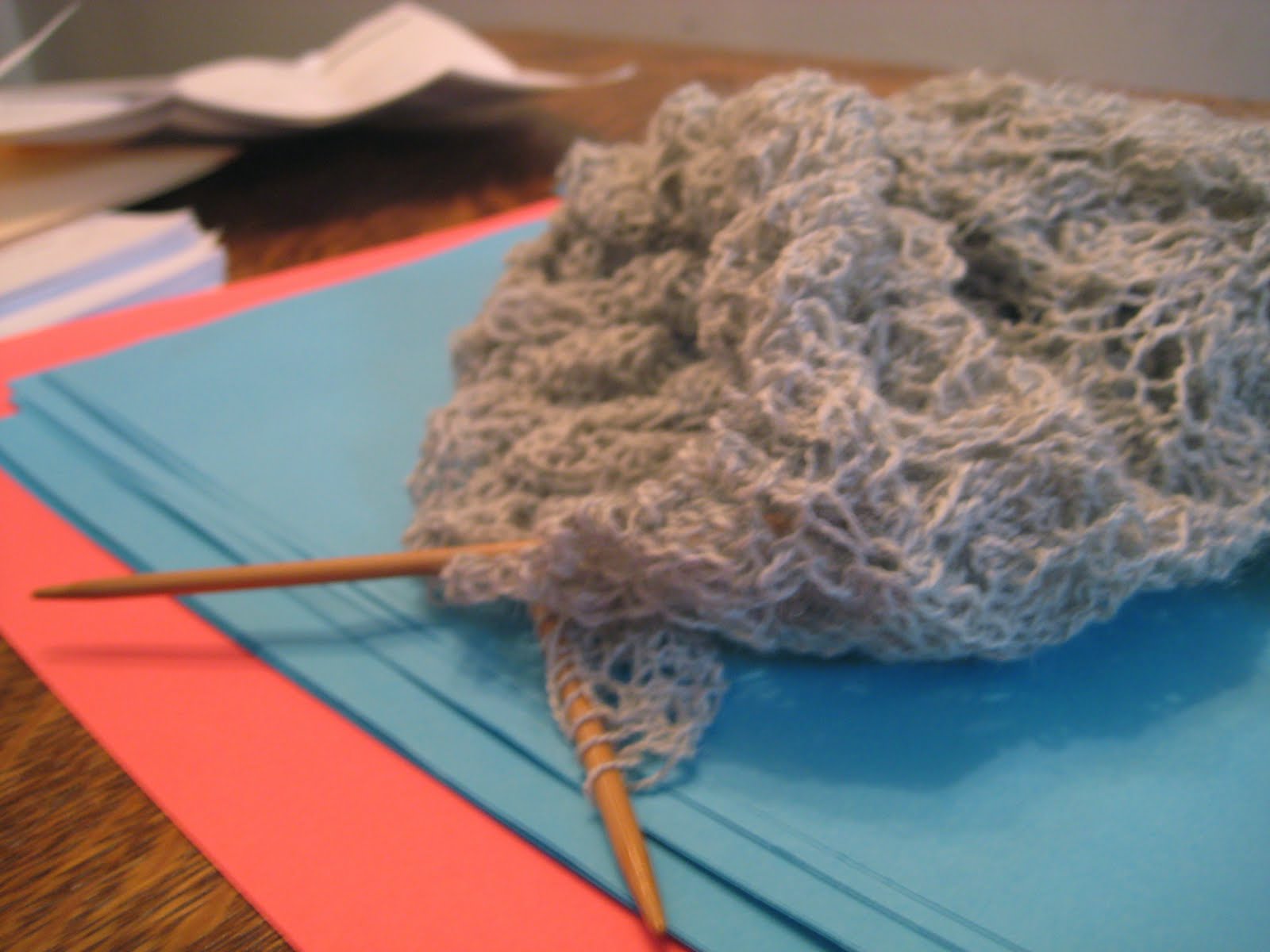 This is a new Haruni, in one of the *wince* three skeins of Silky Alpaca I picked up at So Much Yarn. The pattern is much more intuitive the second time around, and I am already halfway done!