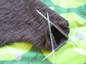 Look what’s back on the needles: the Lyttelton that I started what feels like ages ago!