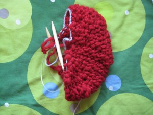 Then I thought I could knit Urchin, which has been on my Ravelry queue since 2009, with the lumpy red handspun that I have been storing for a similar length of time.