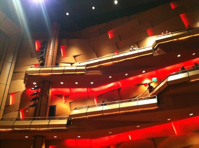 Second: Ikeda Theater. There are three classes of venue in the Phoenix area. Arenas, which are commercial and crass, with poor acoustics and so much dead space that all but the very best bands are swallowed up. Then you have the venues, like the Marquee and the Clubhouse of yore, which are hideous concrete shells of buildings, but ones that are small enough and have/had sufficiently hardcore audiences that it’s fun to be at shows in them if you don’t look at the setting too hard. Next come the Rhythm Room and Crescent Ballroom, which are clean, well-staffed, and legitimately terrific places to see shows. Last, there are the real theaters–beautiful places that were designed to make wonderful performers look and sound even better. The Ikeda is at the tippy-top of this class because its layout lets everyone, no matter where they’re sitting, feel like they’re right against the stage. And the sound–*gasp*. The sound in there is amazing.