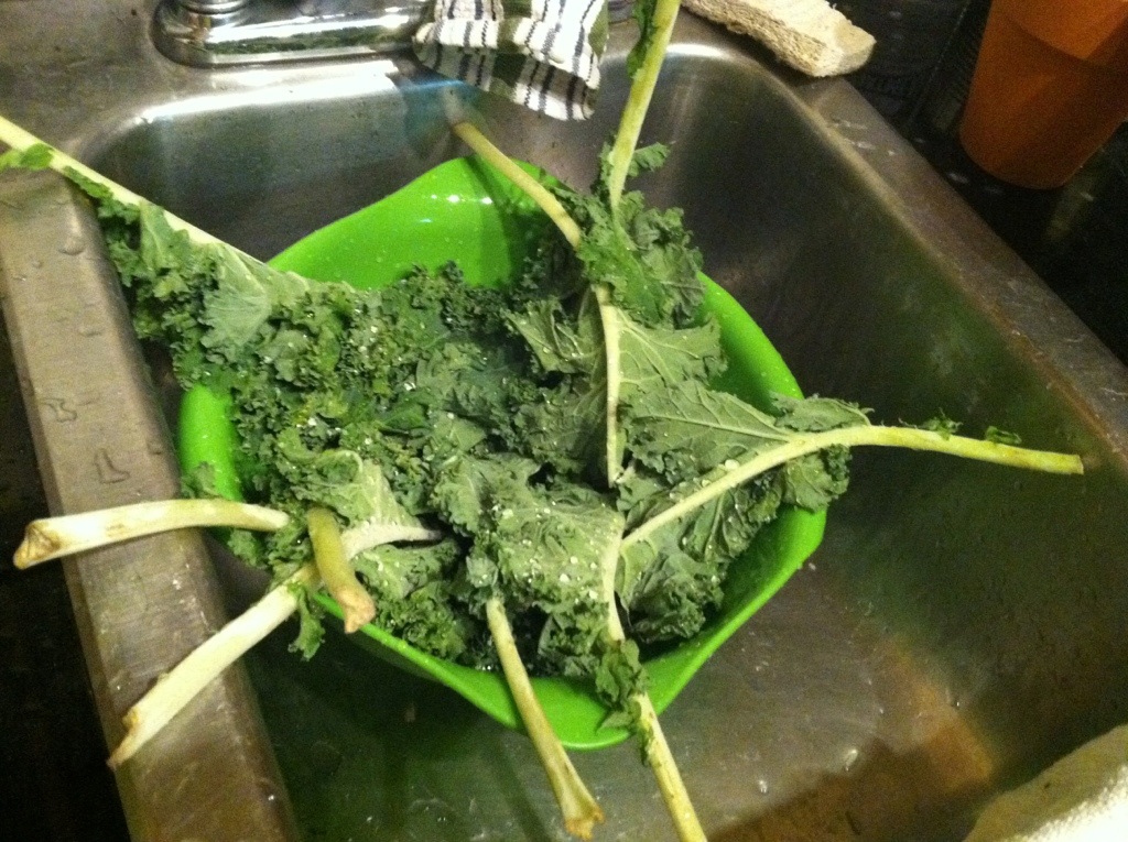 I am also making kale chips. Kale is inexpensive and in season–not to mention yummy good when tossed with olive oil & a titch of salt & baked.