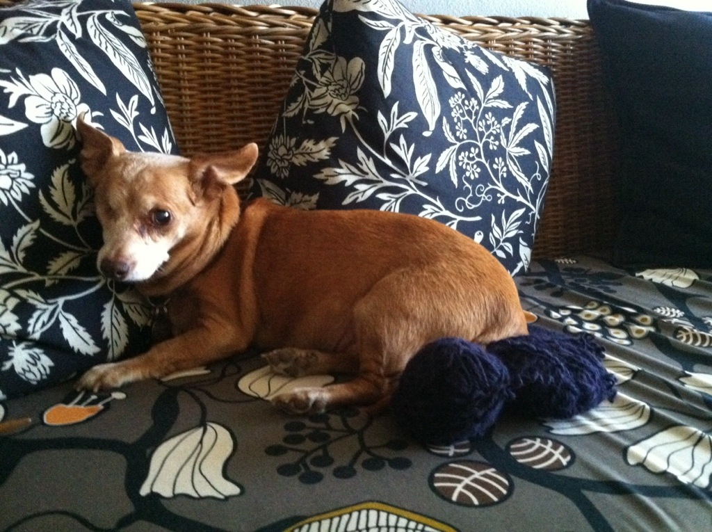 What a cutie! She has a guilty look about her–as if she knows she’s not supposed to sit on your soft things.