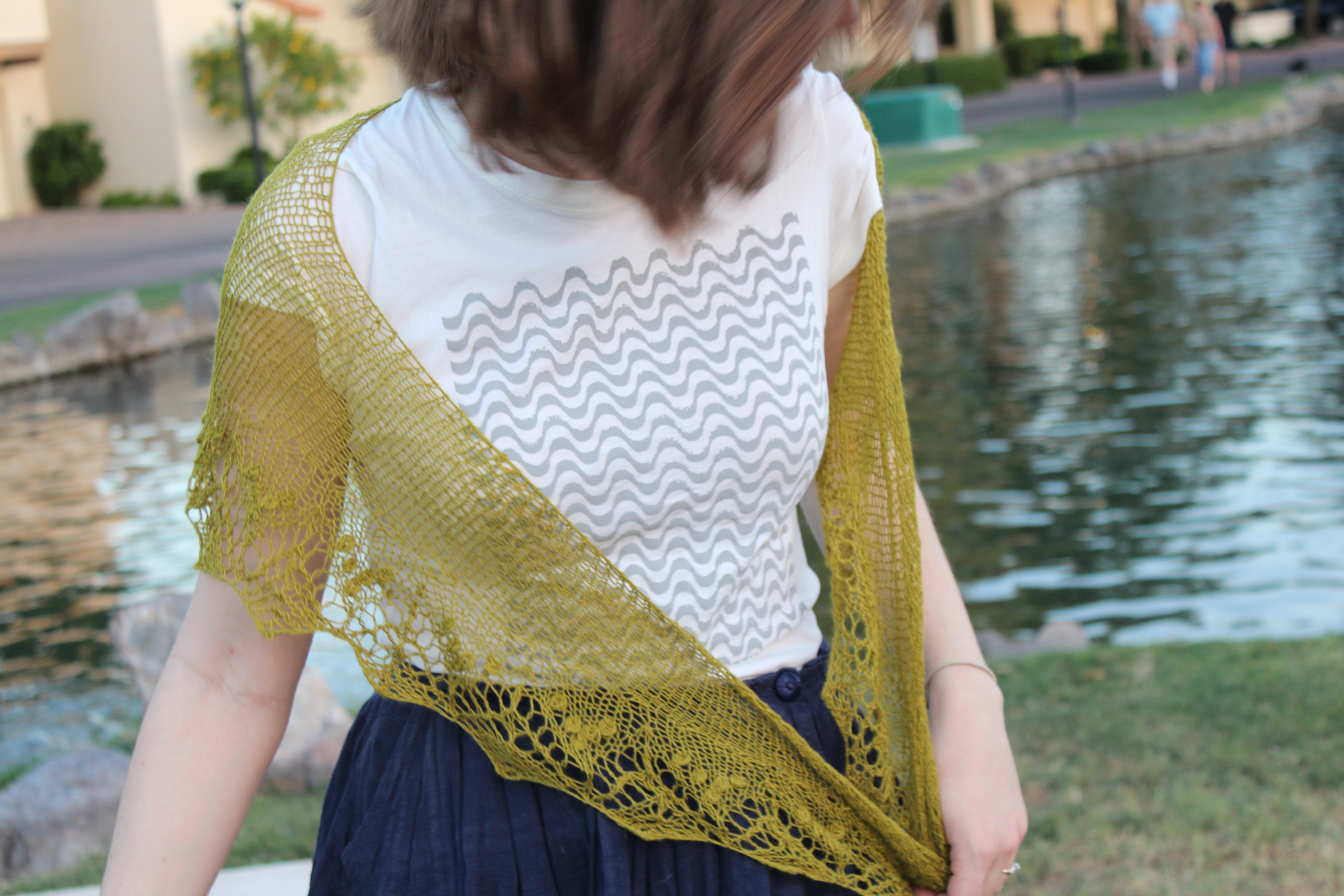 Somewhere along the line, the desire to have this shawl parted ways with the vim to actually get it out of my queue, so here we are four years later. I will not beat about the bush: I really didn’t like making it. I love wearing it, and it has already proven useful in my works-well-with-green wardrobe, but the knitting. Meh.
