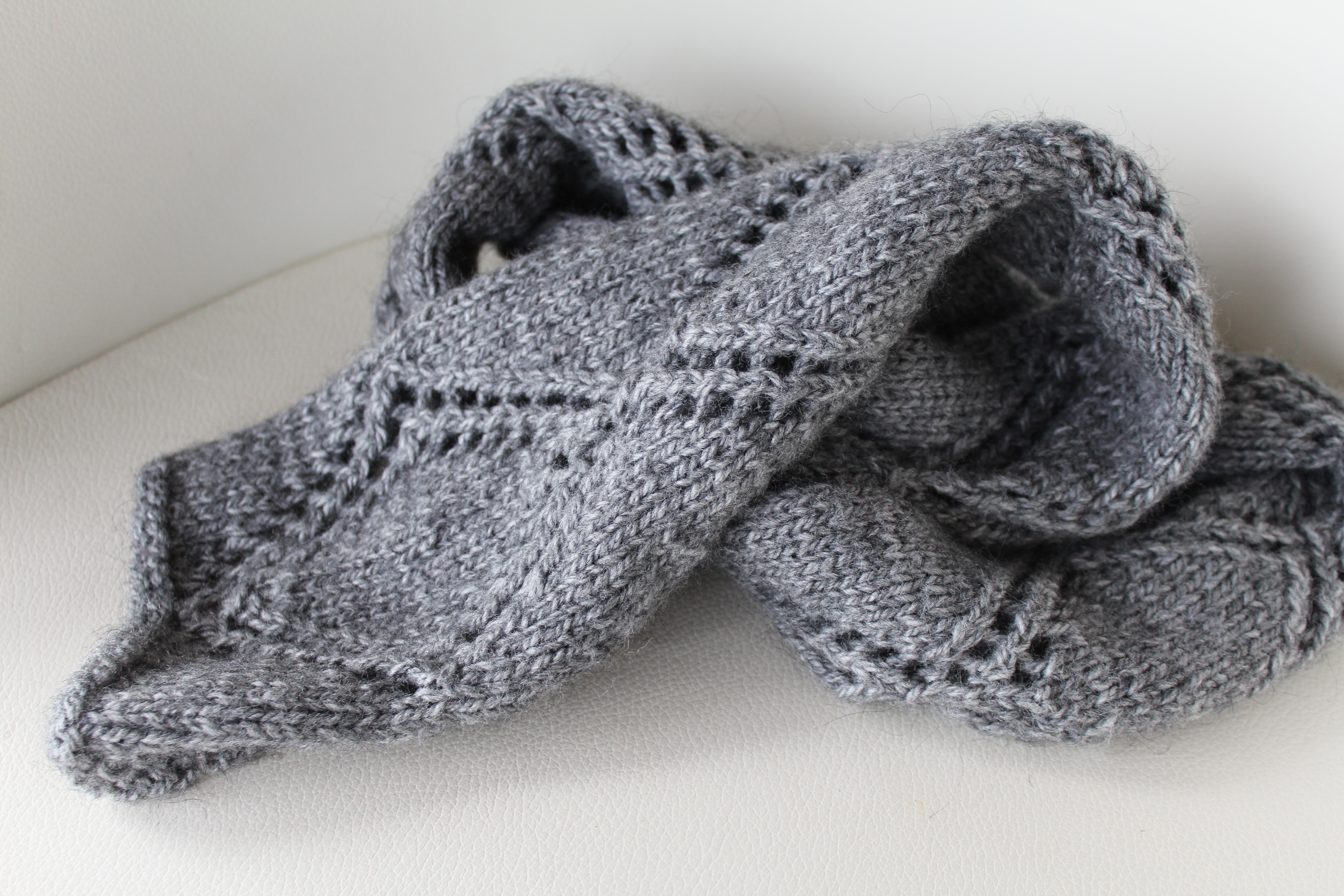 Gray scarf with a lace pattern