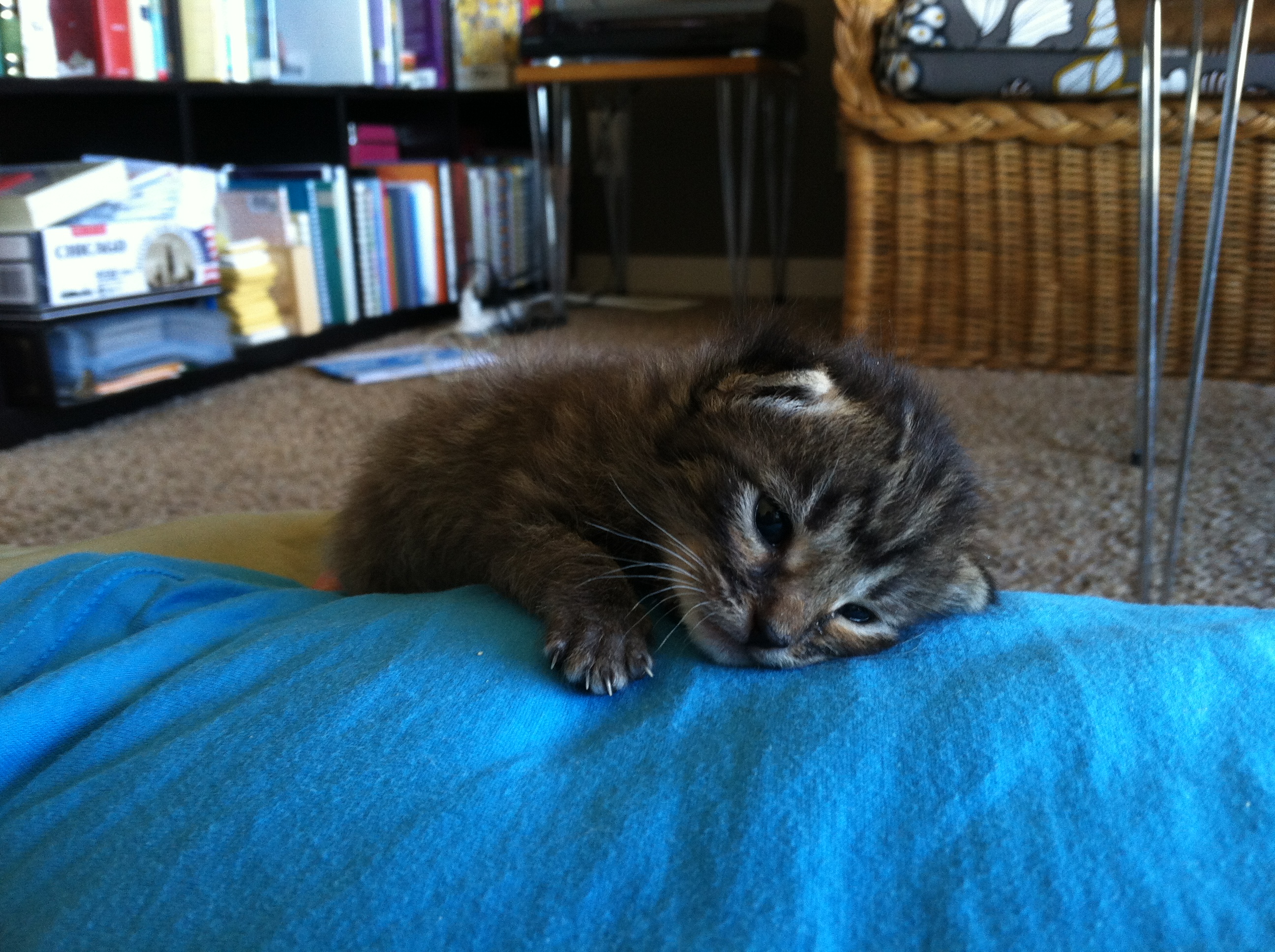 Thank goodness Querido was there, to ooh and aah and marvel at their tininess and show me my text to remind me I was the one who shouted SOMEONE MUST SAVE THE KITTENS. During the twenty minutes a day they weren’t crying because their bottle wasn’t right, getting bathed, or shivering and crying under a towel post-bath, they were pretty cute.