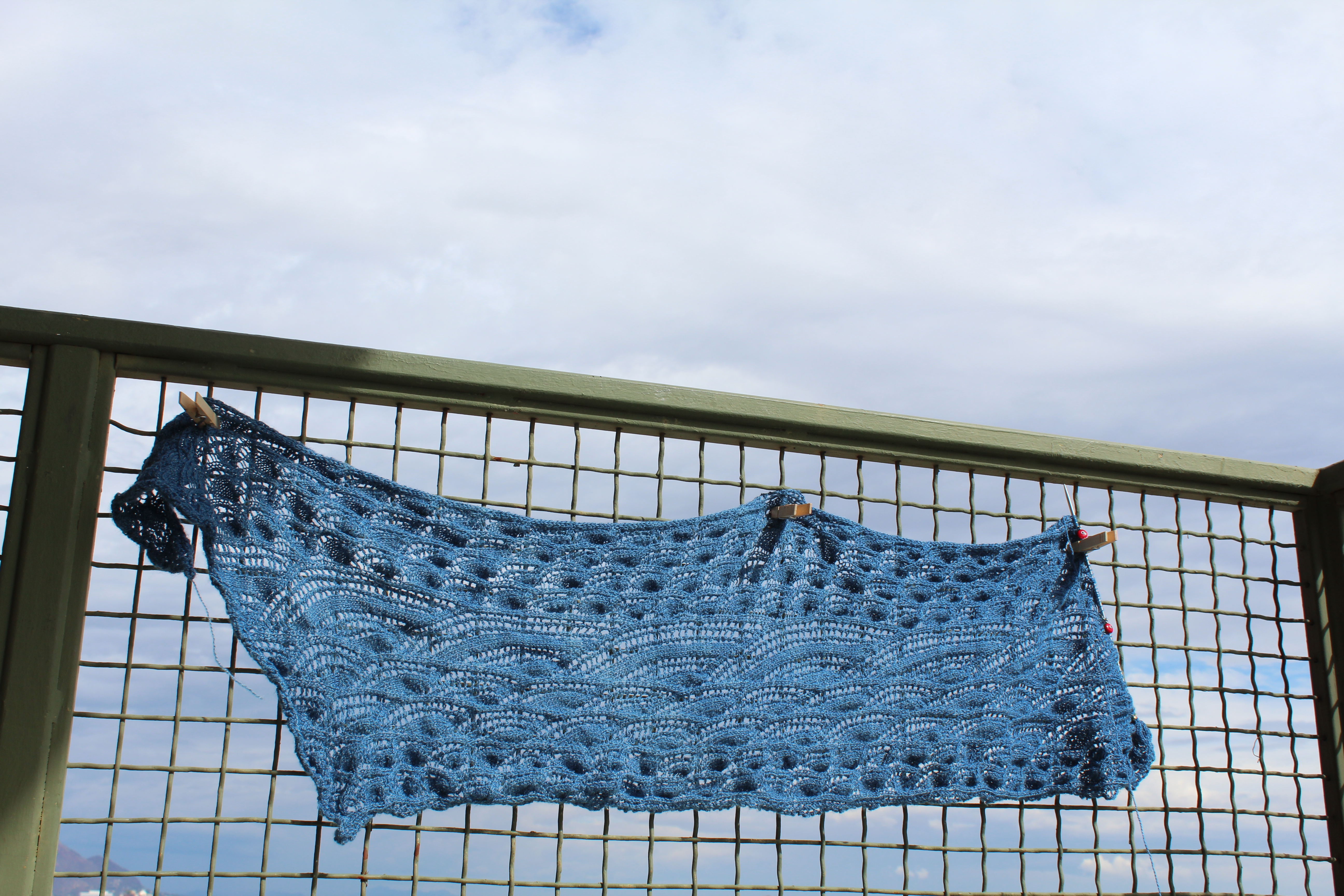 A few clouds were left this afternoon, but I don’t mind if they move on, as long as they take the soggy humidity along with them. My Epic Seas stole has become something of an obsession, and after getting back into the swing of reading the chart, I am speeding along. Can you tell it’s gotten longer since its visit to Sunset Crater?