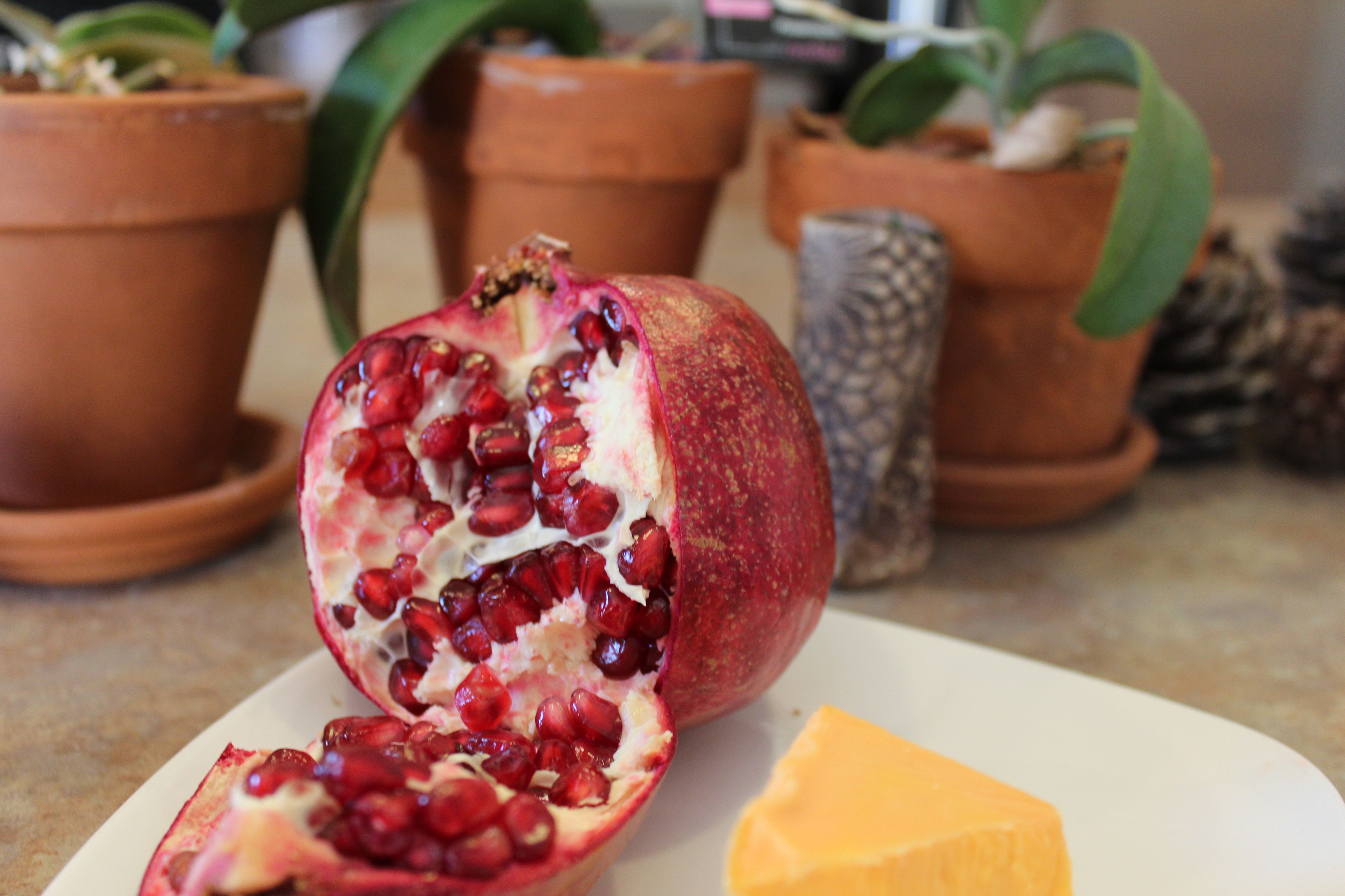 For a yummy bright pomegranate, and a day spent putting my new house to rights.