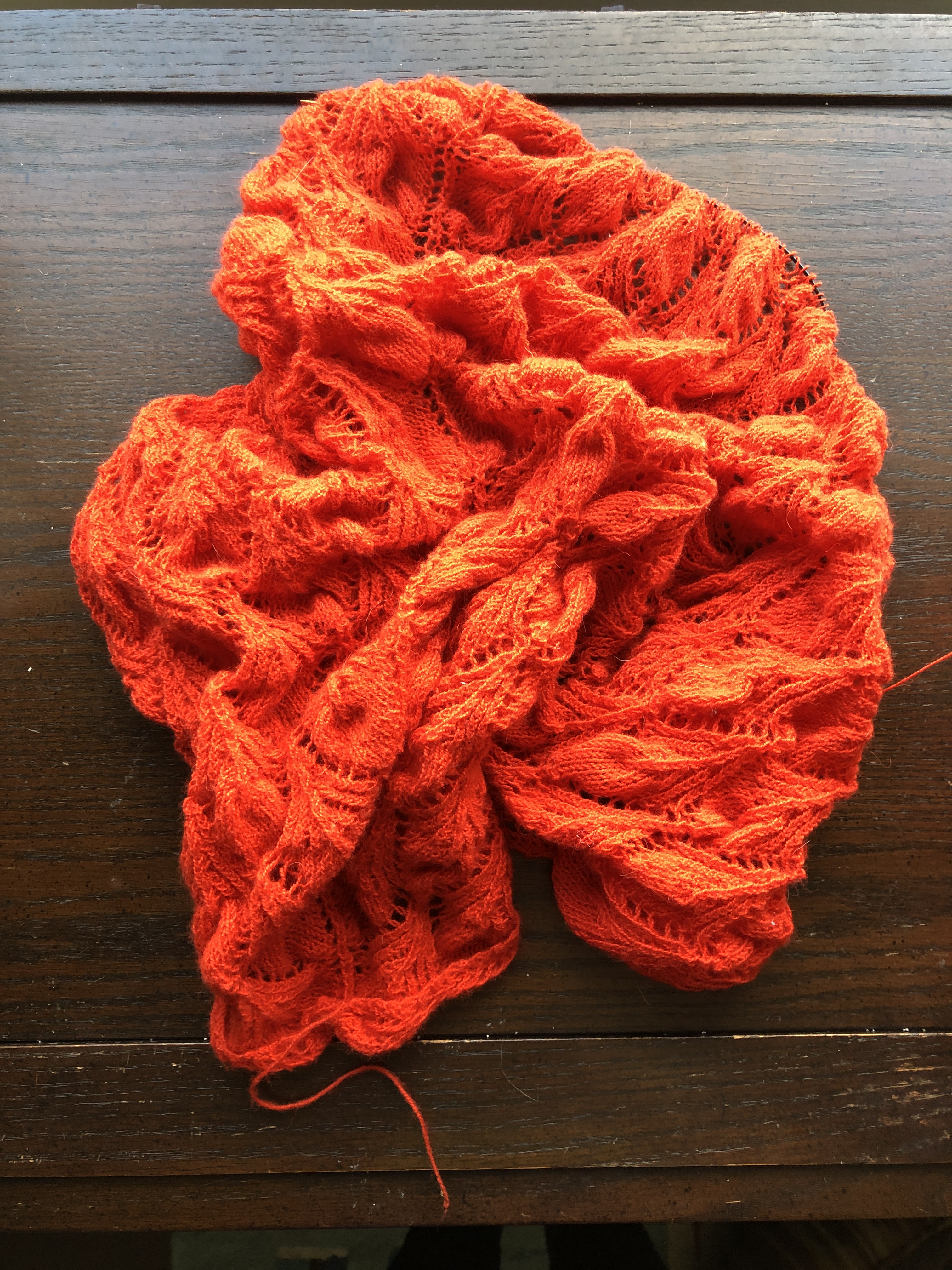 Balled up Fantoosh! shawl in bright orange Shibui Cima