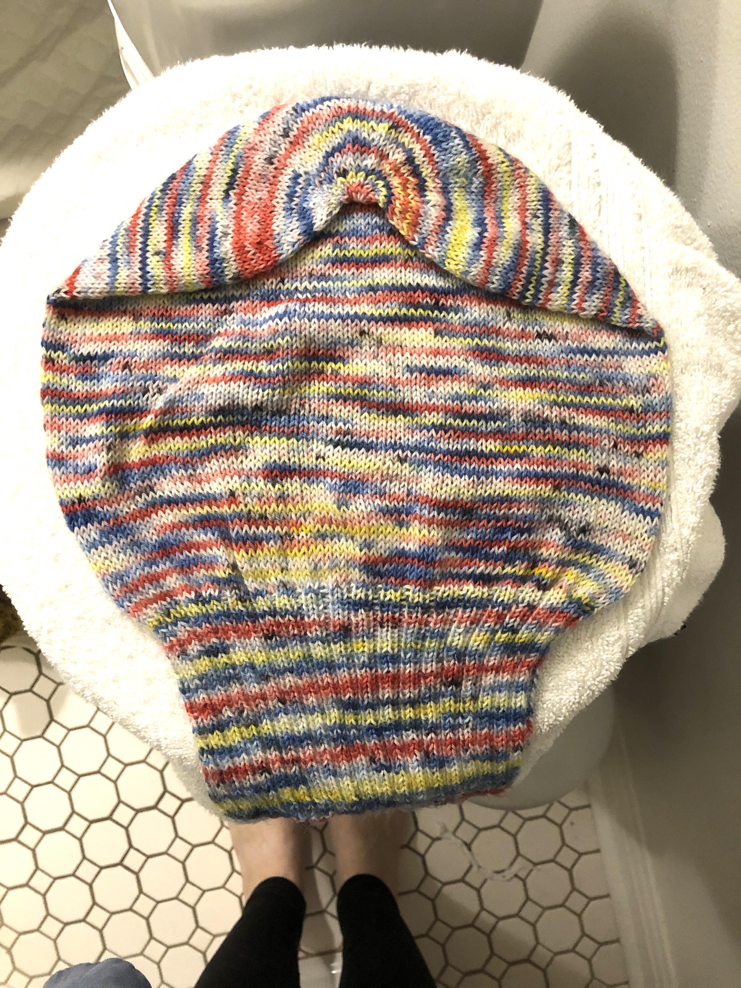 Sockhead Slouch hat blocking on a hamper